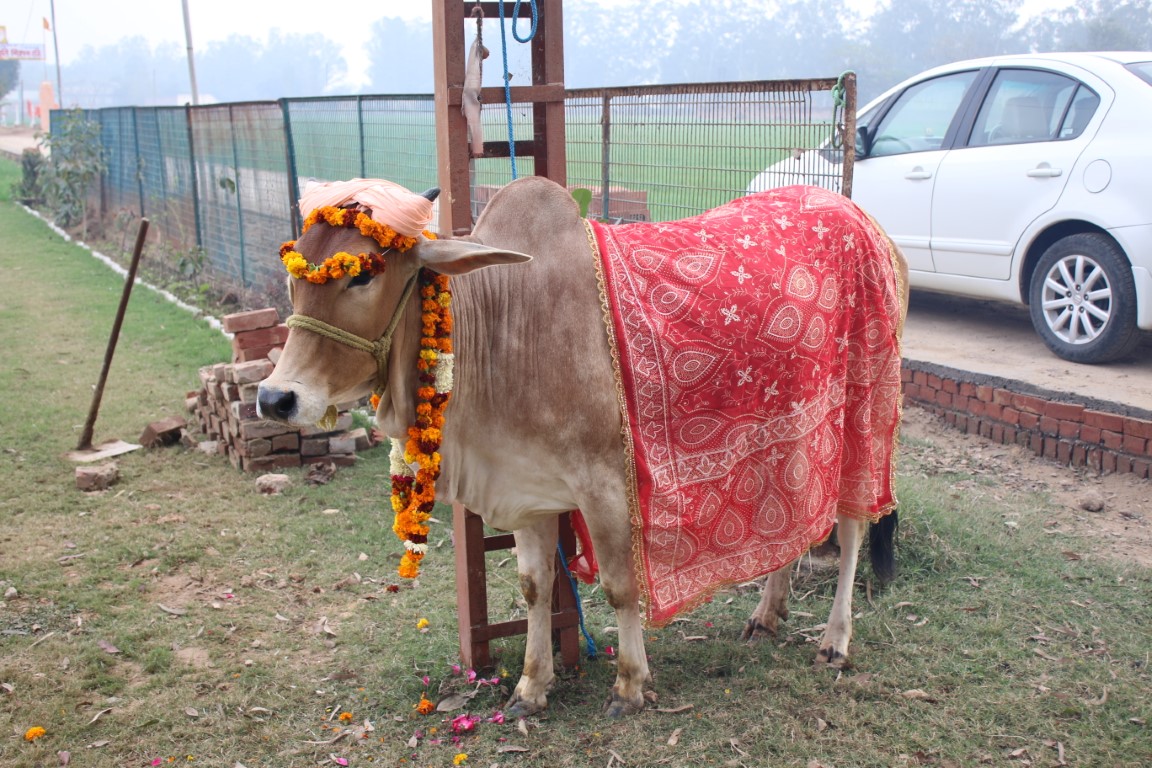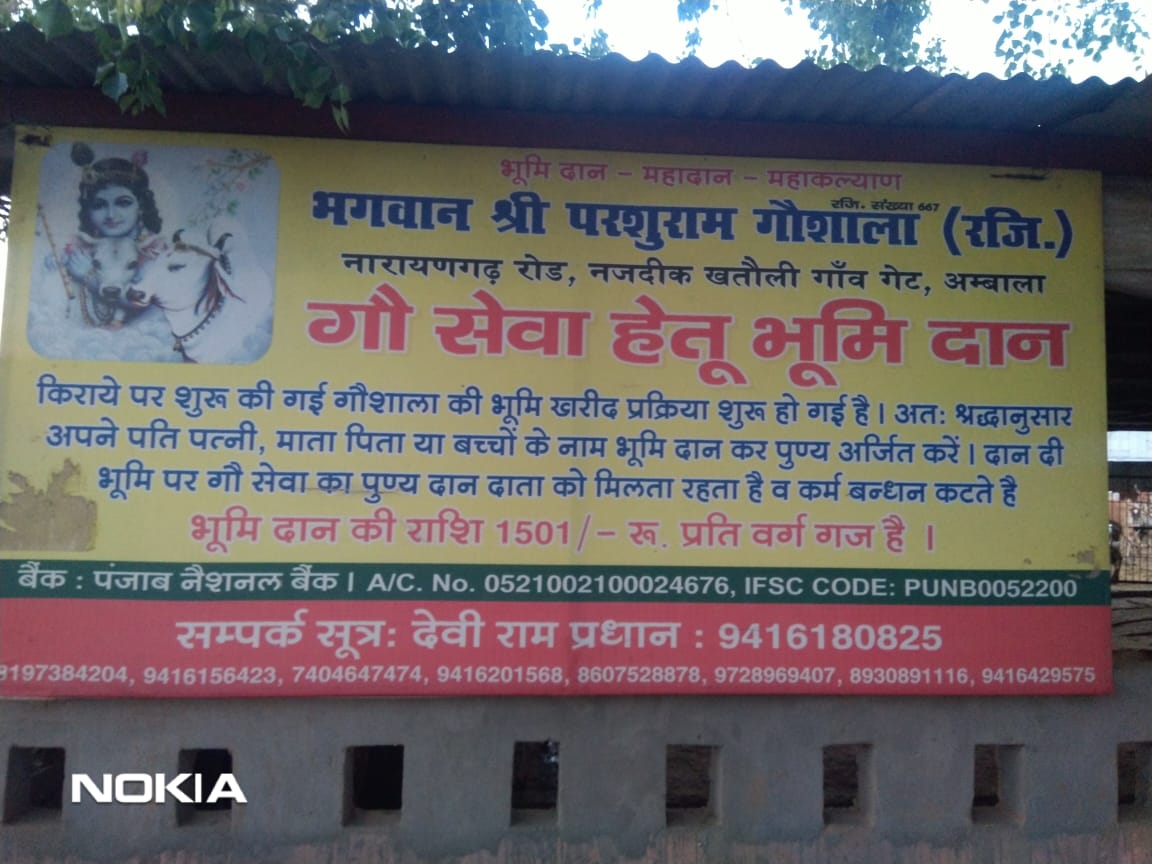 Bhagwan Shri Parshuram Goshala was established in 2015 by Davi Ram Sharma as an effort to revive, regain and re-establish Bharat's ancient Vedic culture. In Vedic traditions, the Cow was revered as Divine Mother, the Gomata, and one which bestows health, knowledge and prosperity. Volunteers decided to start "Gaushala" for the ownerless, incapable and sick cows with storage sheds for the capacity of serving more than 150 cows. In Sanskrit, the word "Go" also means "Light".